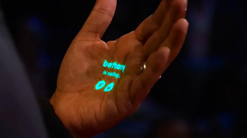 若將相機對準食物,AI助理則可以辨識其營養價值。而不像智慧型手機,AI Pin不需要螢幕,可以直接在桌面或用戶的手掌上,投影出文字與介面。